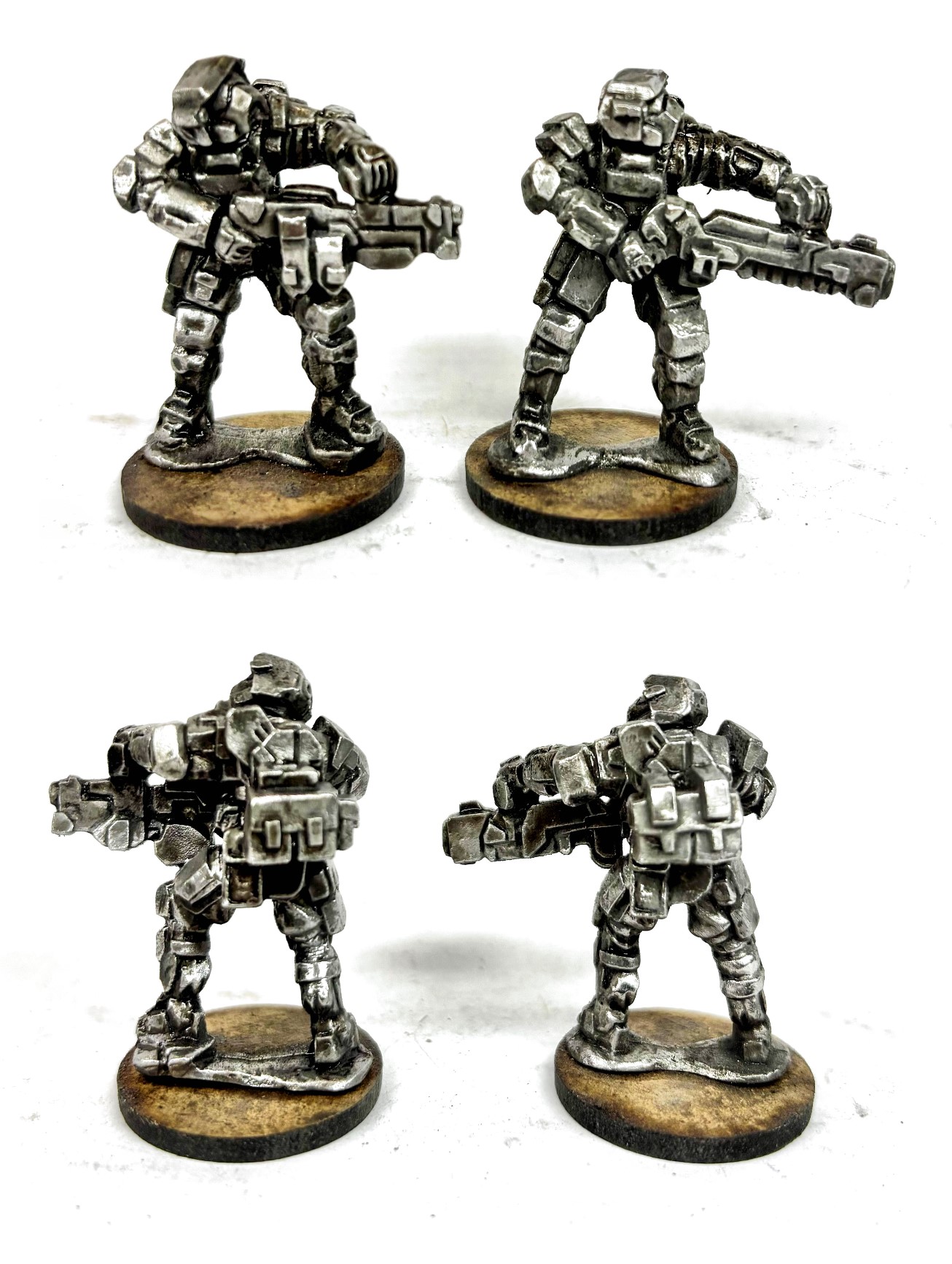 2 elite power armoured troopers, armed with heavy weapons - a heavy slug thrower and an anti-tank burner. Separate heads supplied. Some assembly required.